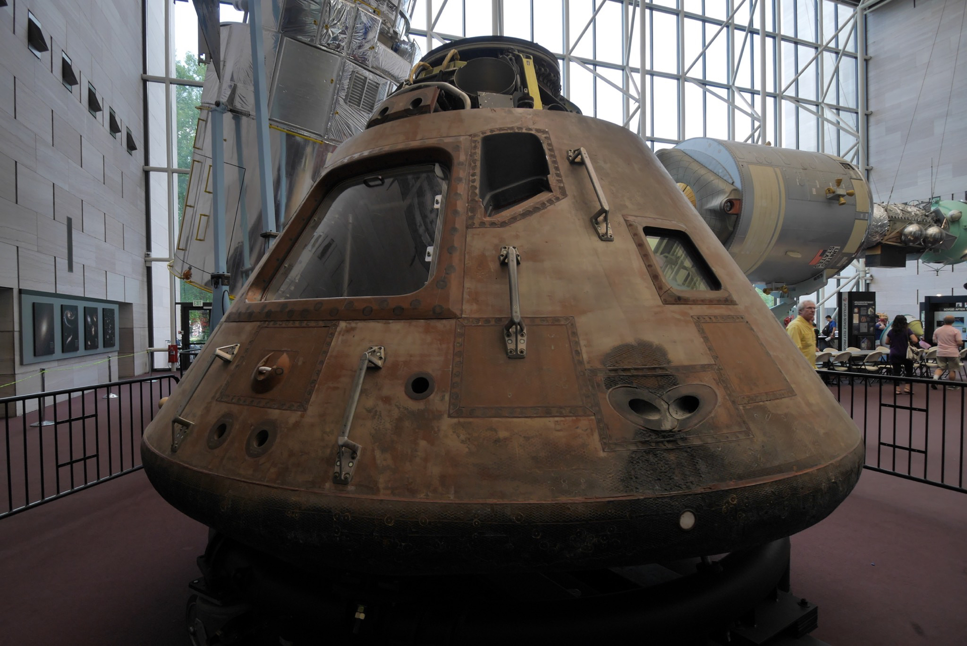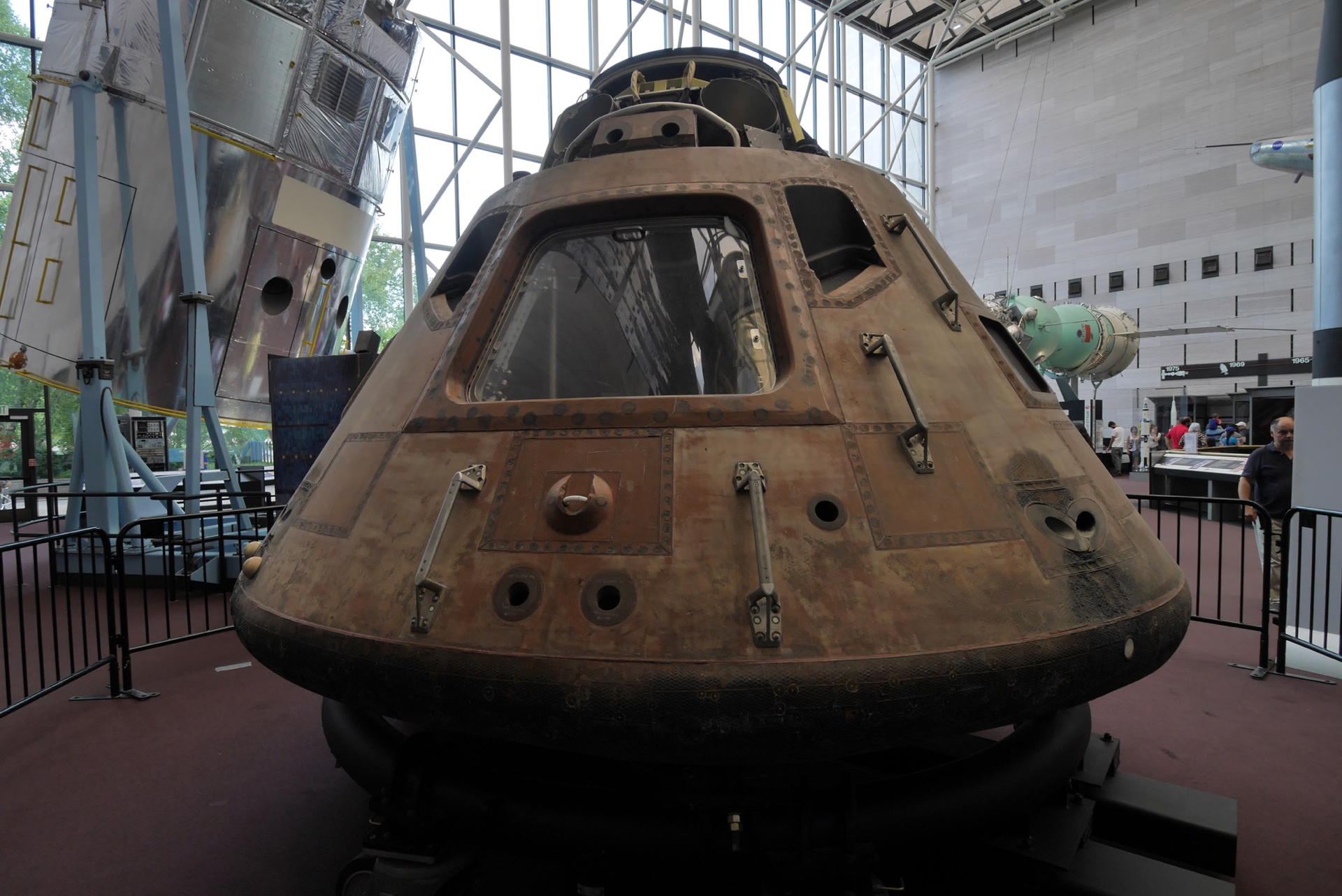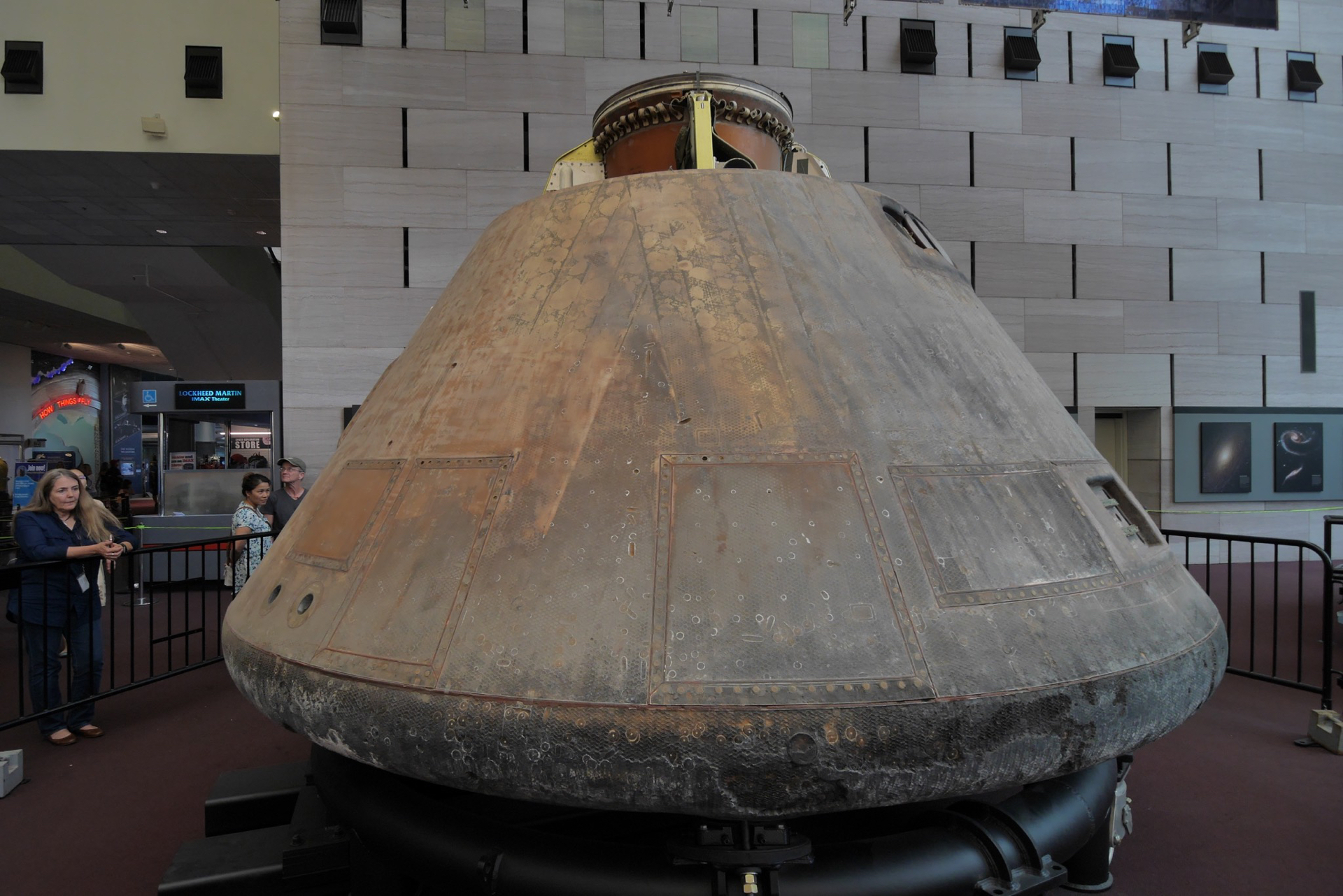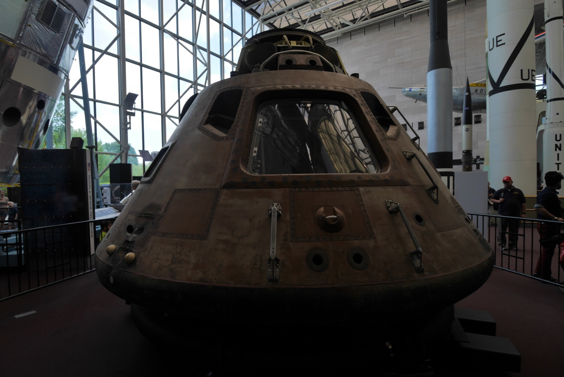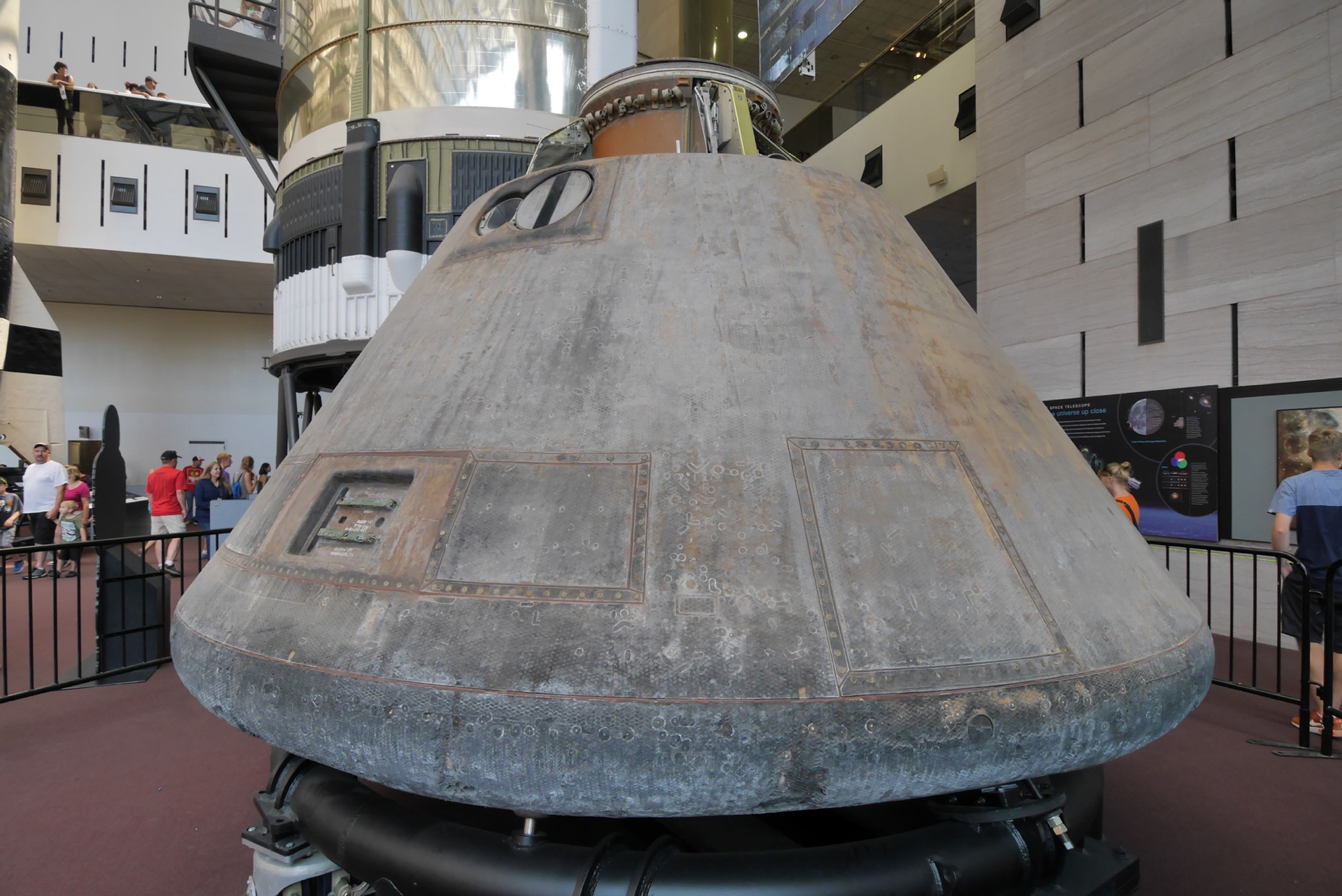 The Apollo 11 command module carried astronauts Neil Armstrong, Buzz Aldrin and Michael Collins around the dark side of the moon and back to earth on the first lunar landing mission.