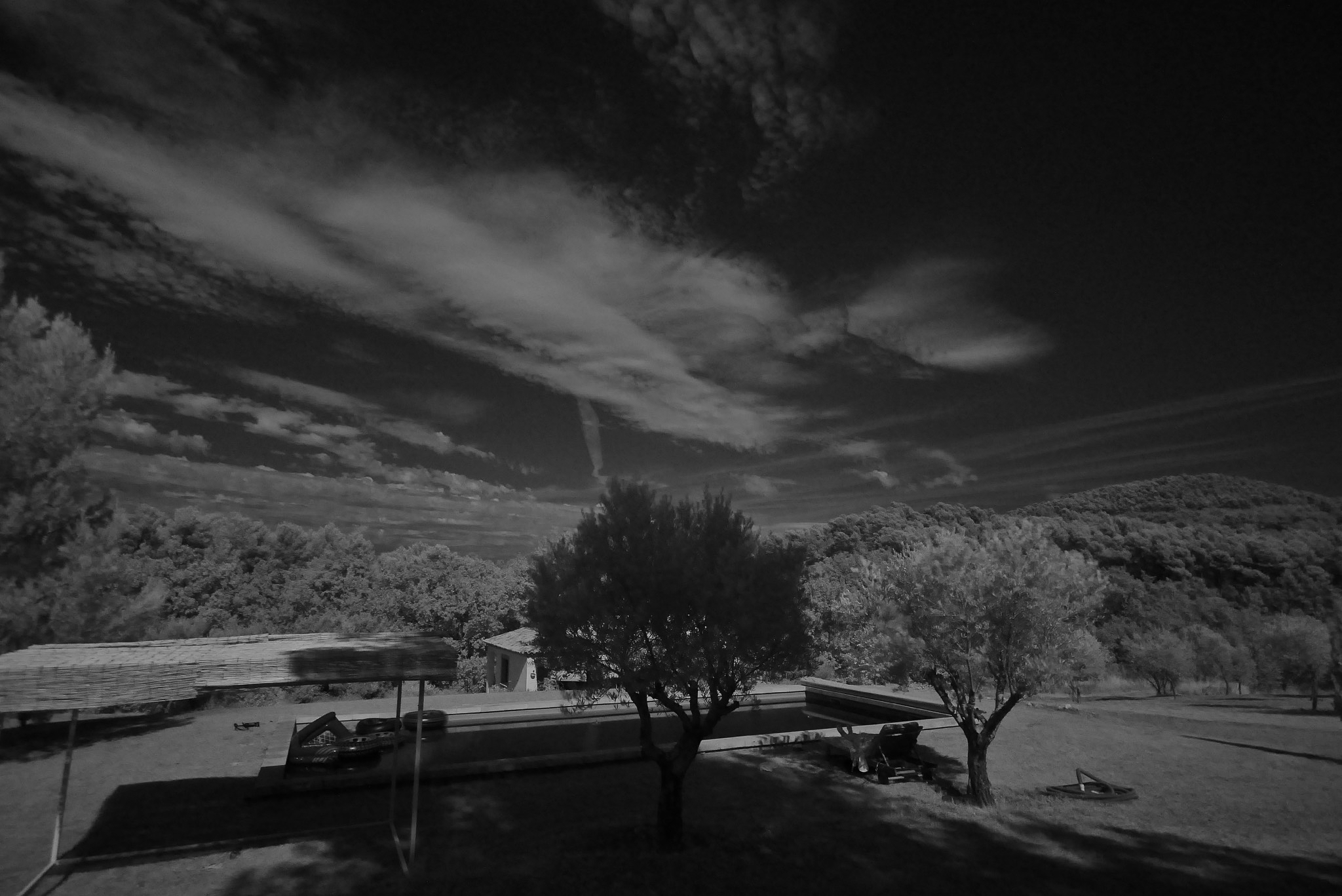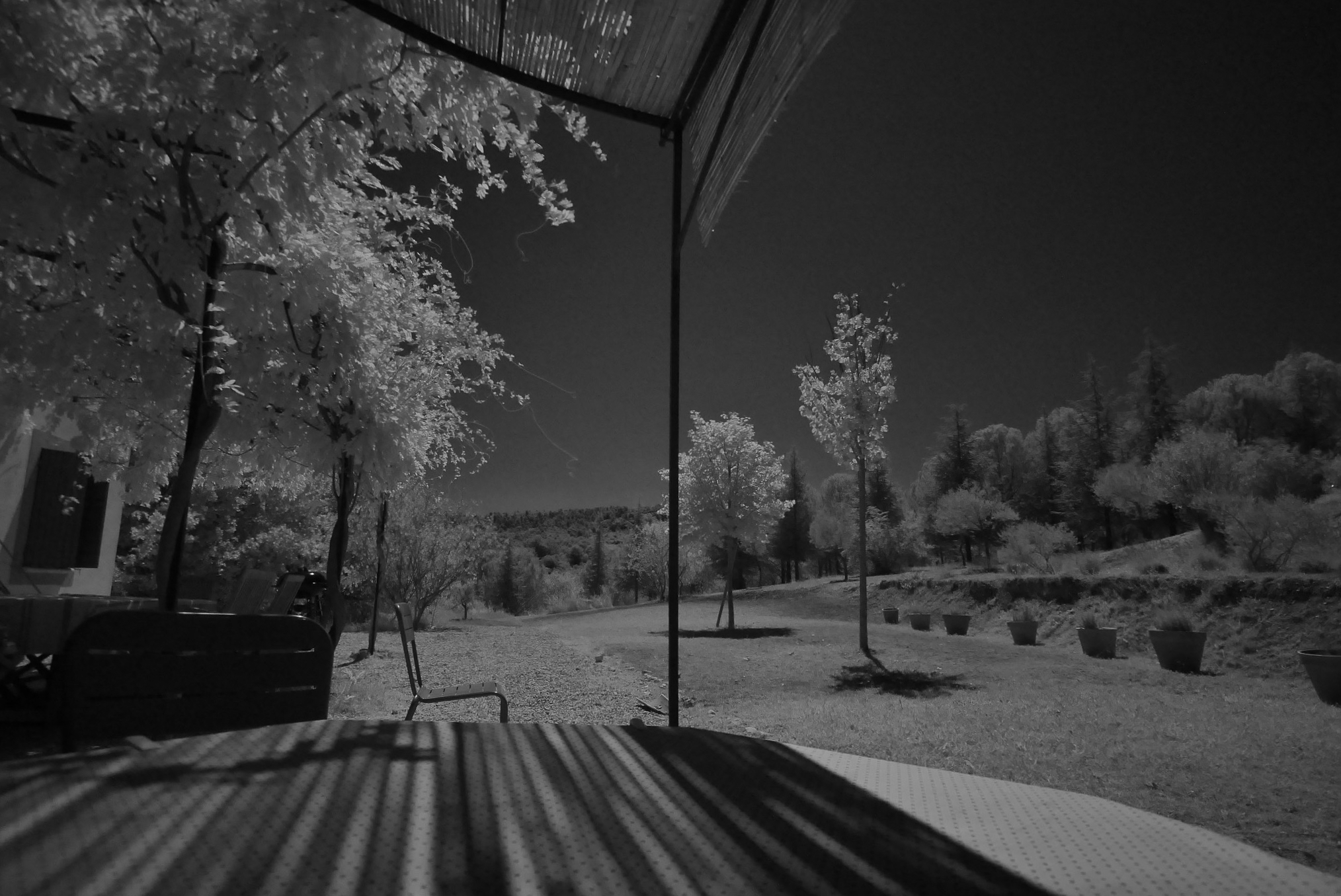 A wavelength just greater than that of the red end of the visible light spectrum but less than that of microwaves, infrared is emitted particularly by heated objects.